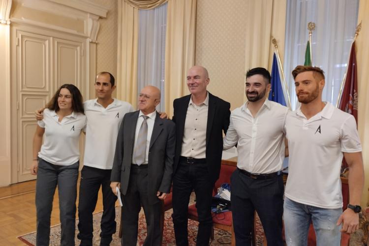 6 Dicembre 2022 La Federazione italiana Sport Rotellistici dona al sindaco Luca Salvetti uno skateboard in legno