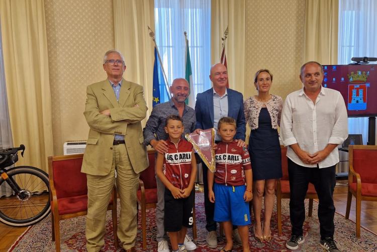 30 Luglio 2024 Il sindaco Luca Salvetti ha ricevuto Paolo Bettini, il campione olimpico di ciclismo ai Giochi di Atene 2004
