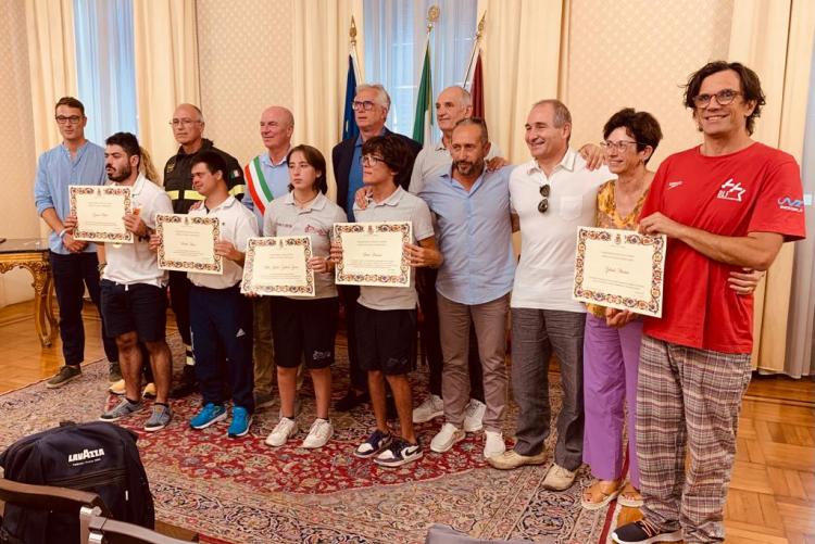 10 Agosto 2023 Il sindaco Salvetti ha consegnato una pergamena istituzionale per meriti sportivi a cinque atleti paralimpici