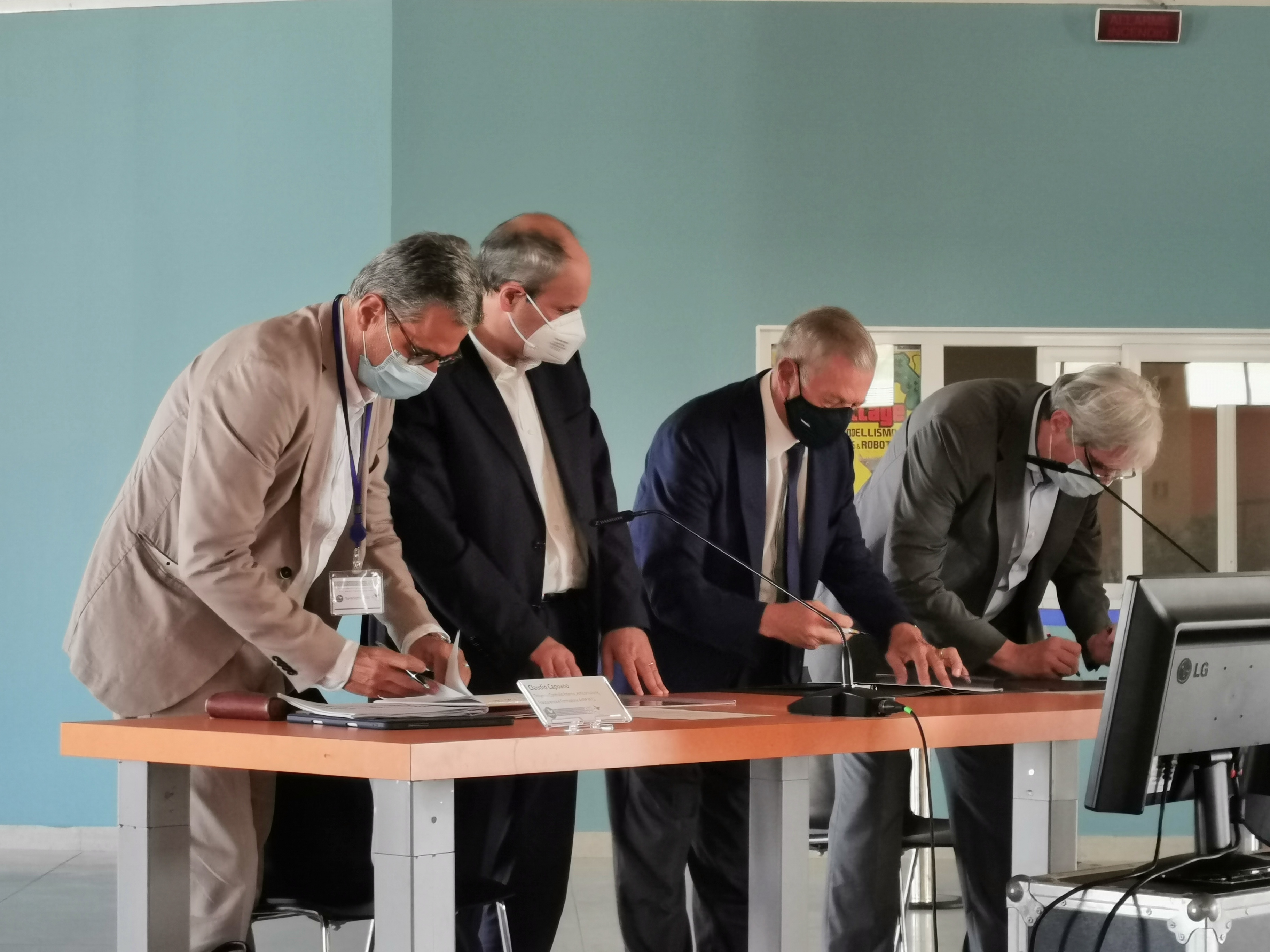 Livorno, 24 giugno 2021 - Questa mattina, al Terminal Crociere, l'assessore al Lavoro e Sviluppo Economico Gianfranco Simoncini ha firmato con Luciano Guerrieri, Presidente dell'Autorità di Sistema Portuale del Mar Tirreno Settentionale, un Accordo di collaborazione tra Adsp e Comune di Livorno, a sostegno delle iniziative formative di interesse per le filiere portuali, logistica, marittima, della nautica e del diporto individuate nel protocollo “forMARE Toscana”.