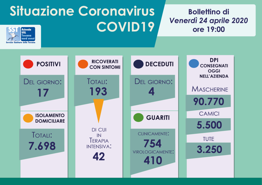 Aggiornamento situazione Coronavirus "Covid-19" - Bollettino di venerdì 24 aprile 2020, ore 19
