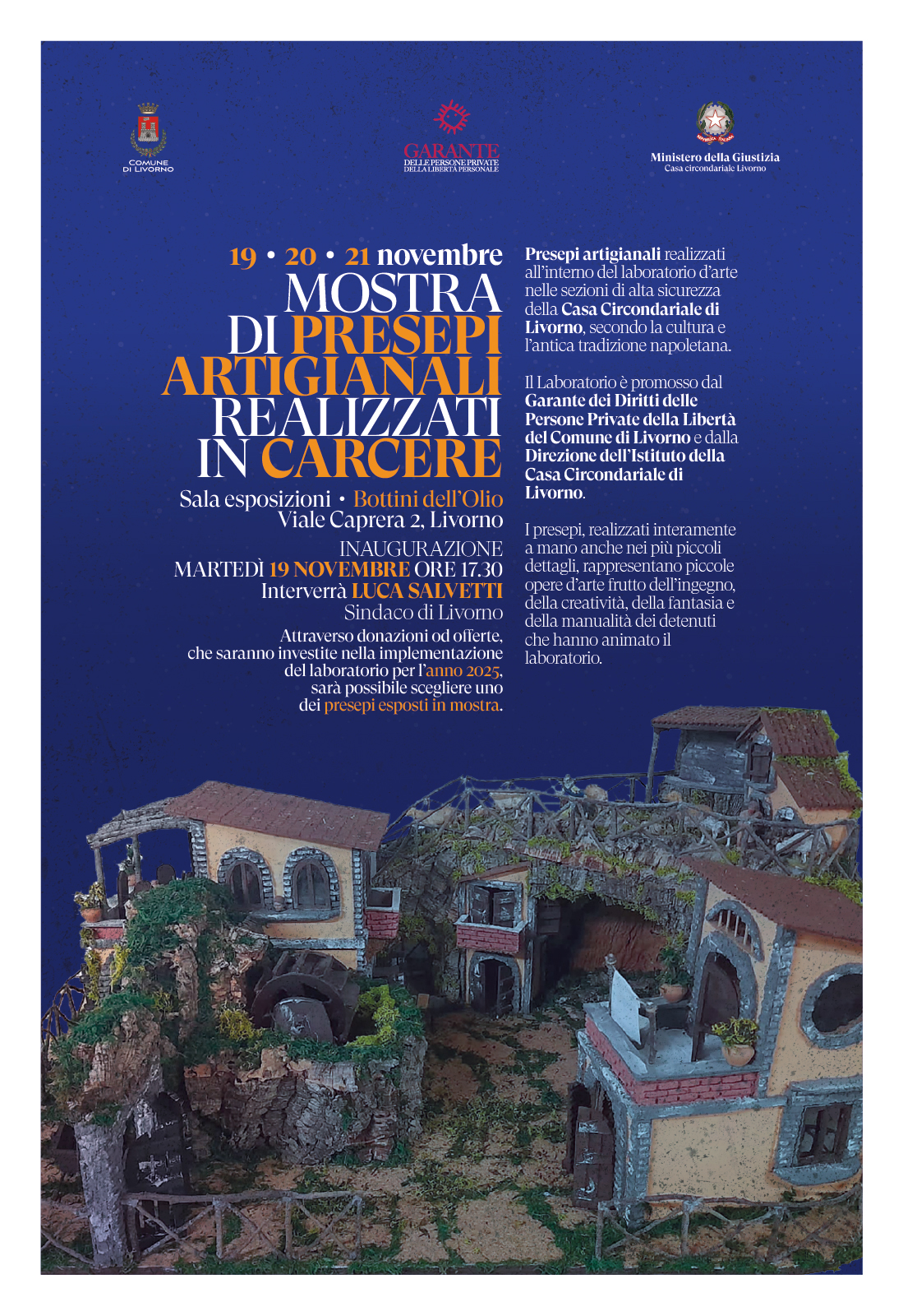 La mostra sarà inaugurata martedì 19 novembre alle ore 17.30 alla presenza del sindaco di Livorno Luca Salvetti, del Garante dei diritti dei detenuti Marco Solimano, di rappresentanti del Vescovado e della Casa Circondariale di Livorno.