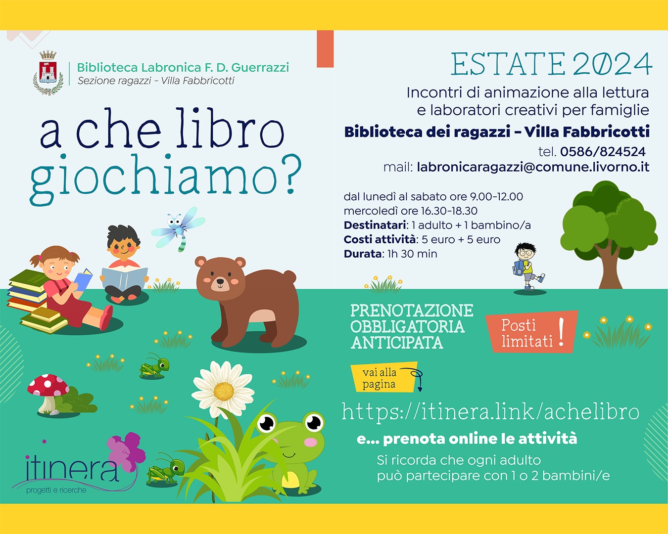 Livorno, 4 luglio 2024 – Con l’estate tornano alla Biblioteca dei Ragazzi gli appuntamenti dedicati all’animazione alla lettura per bambini e adulti previsti nel programma “A che libro giochiamo?” promossi dal Comune di Livorno in collaborazione con la cooperativa Itinera.