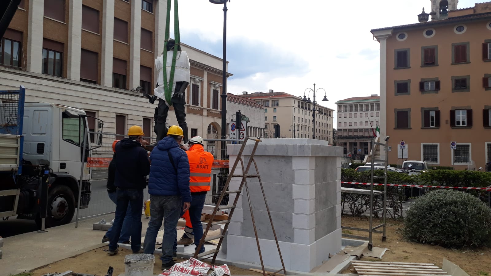 Oggi l'Amministrazione Comunale ha deciso di spo starla a fianco del Comune, davanti alla Provincia, in un punto più visibile, strategico e istituzionalmente significativo del percorso che idealmente unisce la Fortezza Vecchia alla Nuova.