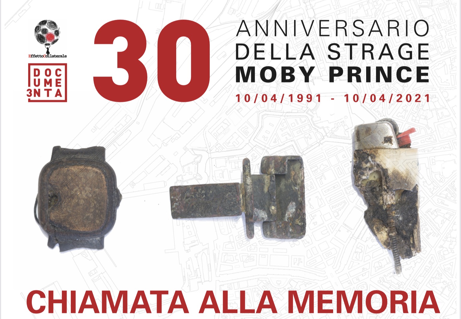 Livorno, 10 maggio 2021. Dopo l’affissione in città lo scorso aprile di 140 manifesti realizzati da cittadini e artisti per l’iniziativa “140×140” in ricordo delle vittime del Moby Prince, proseguono a Livorno le iniziative di “Documenta 30”, progetto promosso dall’associazione Effetto Collaterale in occasione del trentesimo anniversario della strage. Stamani, con l’assessore alla Cultura del Comune di Livorno Simone Lenzi e il vicepresidente dell’associazione 140 Nicola Rosetti, l’associazione Effetto Collaterale ha presentato le iniziative che si svolgeranno da oggi fino al 15 maggio: una chiamata alla memoria in cinque tappe tra mostre, installazioni, video e laboratori per non dimenticare ciò che accadde nel porto labronico la notte del 10 aprile 1991.