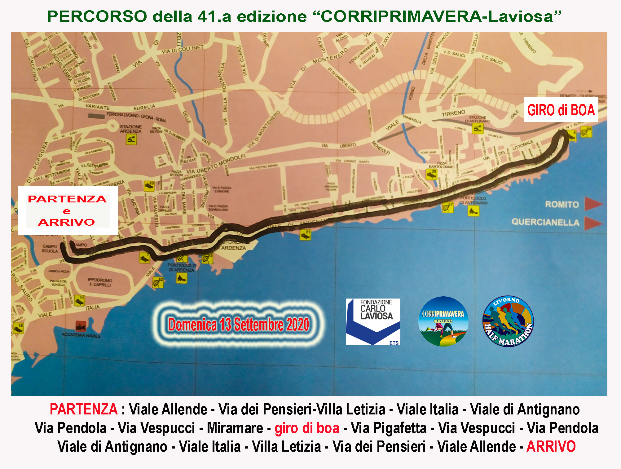 Livorno, 10 settembre 2020 – Rinviata lo scorso maggio quando, nel pieno della pandemia, tutte le manifestazioni podistiche erano sospese, domenica 13 settembre sarà recuperata la 41^ edizione della Corriprimavera Laviosa, la classica Uisp del calendario livornese, organizzata dalla Fondazione Laviosa con la collaborazione della Livorno Half Marathon e il patrocinio del Comune di Livorno.