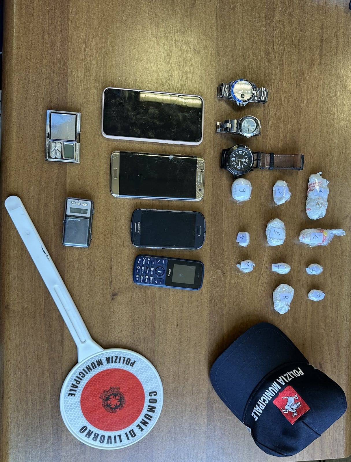 Nell'appartamento gli agenti hanno rinvenuto due involucri di sostanza stupefacente del tipo hashish. E’ stata dunque, effettuata la perquisizione formale dell'intero appartamento dove sono stati trovati 2 bilancini di precisione, 4 telefoni cellulari, 2 orologi, un borsello contenente monete, una targa di ciclomotore e circa 90 grammi di cocaina.