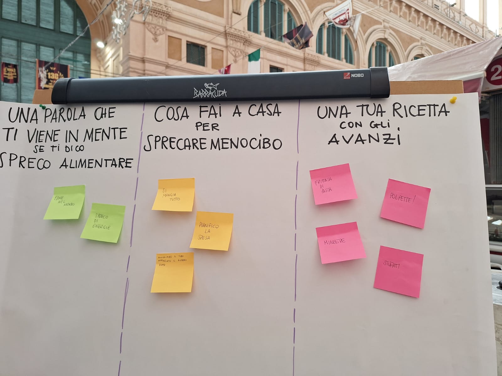 Tante persone che erano al Mercato a fare la spesa hanno a loro volta condiviso con gli altri ricette di famiglia fatte con gli avanzi e tanti spunti per inserire nel quotidiano di ciascuno le buone pratiche, azioni e comportamenti concreti che ci guidano verso l’obiettivo di ridurre concretamente lo spreco alimentare.
