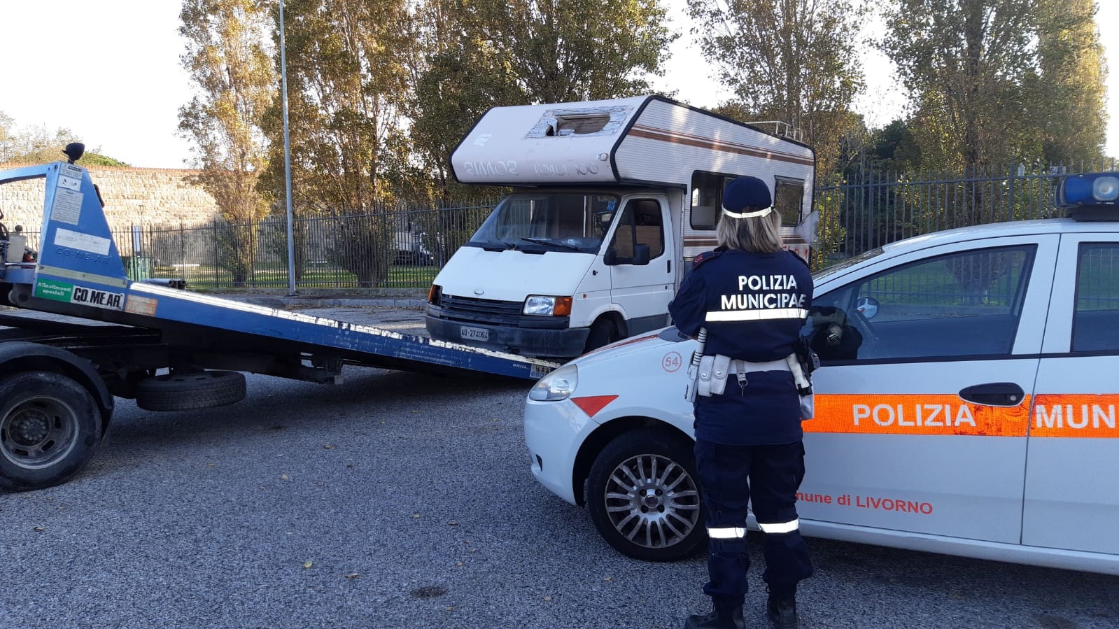 A seguito di esposti dei cittadini, sono stati rimossi 19 veicoli privi di copertura assicurativa, in stato di abbandono sulla pubblica via ma non qualificabili come rifiuti: un camper e un'automobile in via Minghi, sette auto nel parcheggio di viale della Libertà, tre ciclomotori in via De Larderel, quattro autovetture tra viale Carducci e la stazione, un camper in largo Borrani, un'autovettura a Quercianella e una in via Pigli.