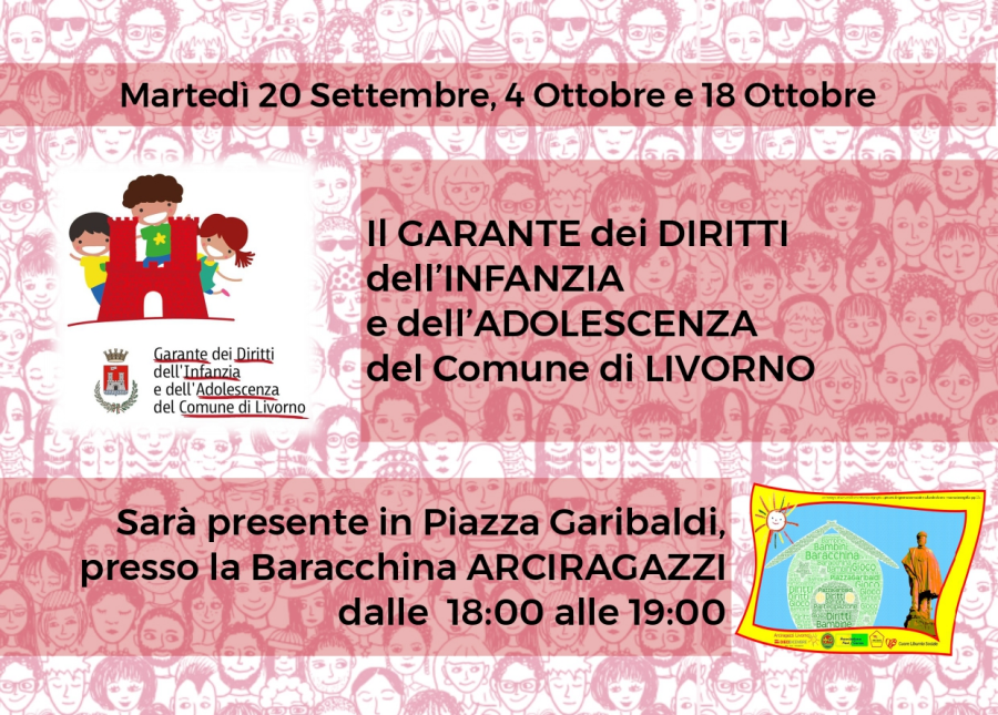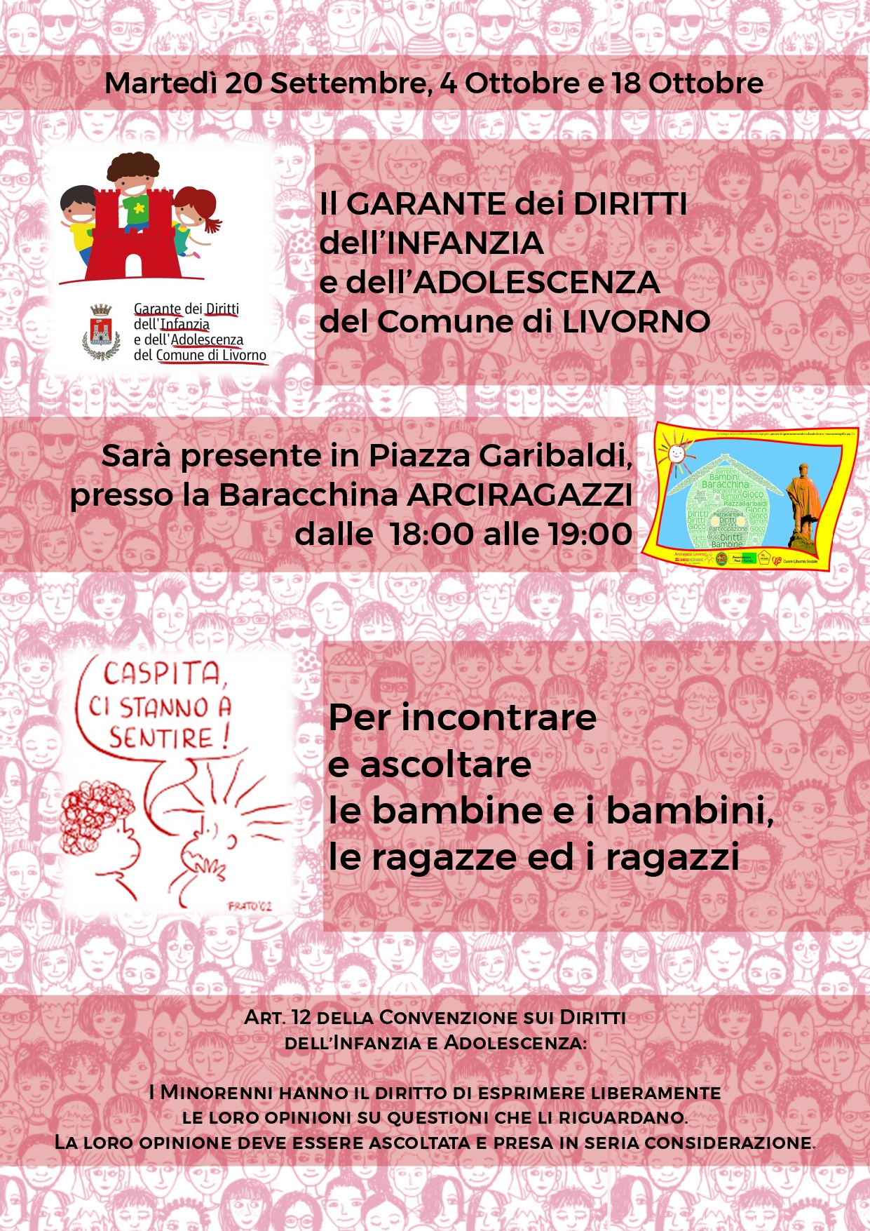 Livorno, 7 settembre 2022 - Il Garante dei Diritti dell'Infanzia e dell'Adolescenza del Comune di Livorno, dottor Stefano Romboli, sarà presente in piazza Garibaldi, presso la baracchina ArciRagazzi, per incontrare e ascoltare le bambine e i bambini, le ragazze e i ragazzi.