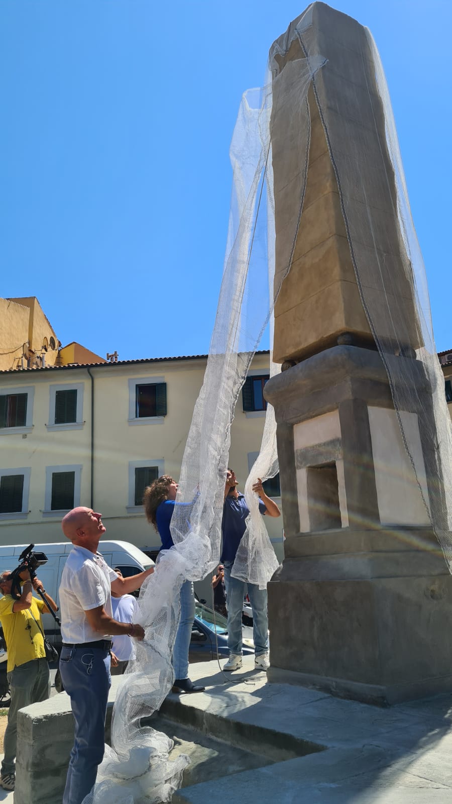 Livorno, 29 luglio 2022 – Si è inaugurato oggi l'obelisco fontana collocato all’estremità sud di piazza Mazzini dopo i lavori di restauro conservativo e consolidamento a cura del Comune di Livorno, effettuati dall'impresa di restauro “SCR Pulvirenti Restauri Soc. Coop. A R.L.”.
