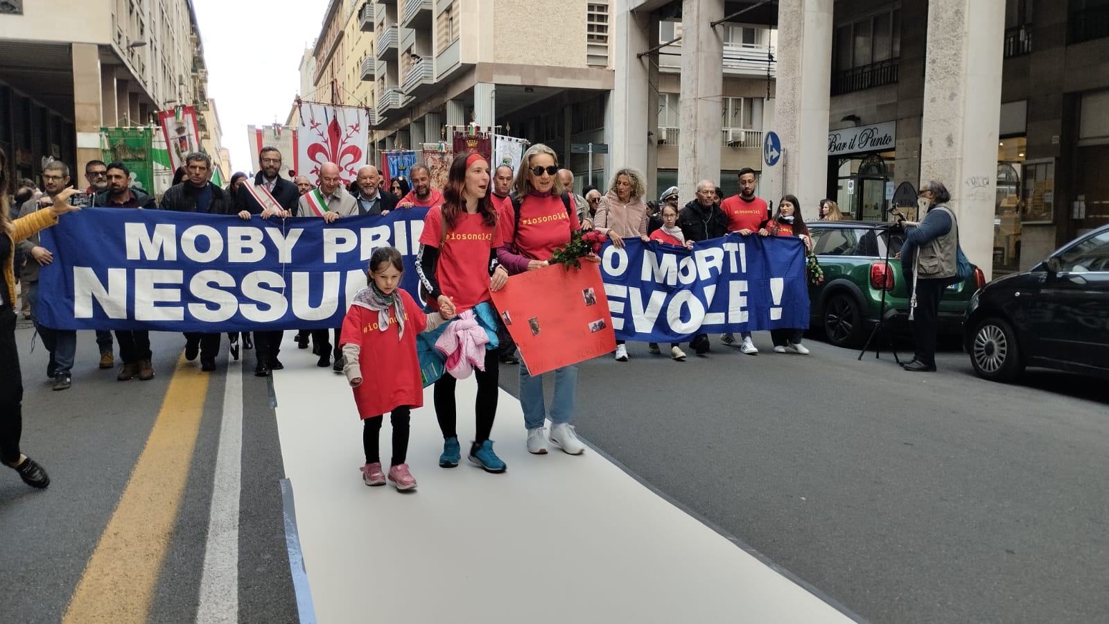 E’ il momento centrale di una giornata piena di eventi per non dimenticare, partita con la deposizione di una corona presso il Monumento in ricordo delle Vittime, proseguita con una messa in Cattedrale. Dopo l’iniziativa in Comune il corteo per le vie del centro con il momento culminate del lancio delle rose in mare all’andana degli anelli, dove si trova la lapide con i nomi, delle vittime del Moby Prince.