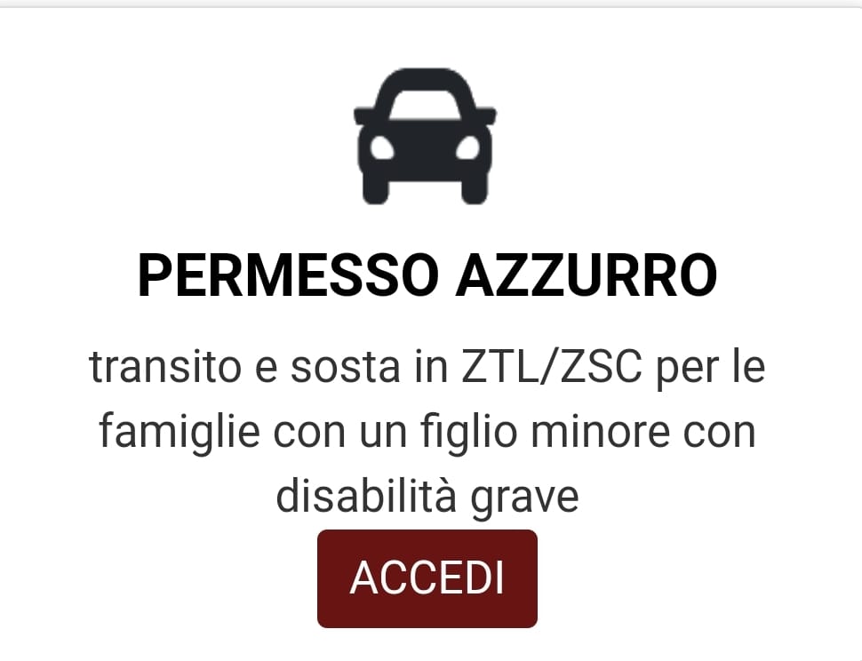 Livorno, 15 maggio 2024 - Da lunedì 13 maggio, utilizzando la piattaforma per i permessi ZTL/ZSC sul sito del Comune, https://permessiztlzsc.comune.livorno.it/ tutte le famiglie con un figlio minore con disabilità grave (ai sensi dell’Articolo 3, Comma 3 della Legge 104 del 1992), anche se non comporta problemi motori o visivi, hanno la possibiltà di richiedere e ottenere gratuitamente il PASS AZZURRO.