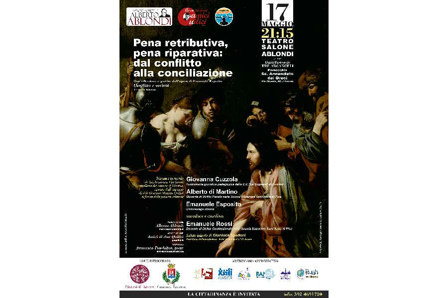 “Il tema trattato – spiegano gli organizzatori - è di grande attualità e ci offrirà uno spunto di riflessione sulla necessità di ricostruire il patto sociale, tra reo, vittima e società, rotto in conseguenza della consumazione di un reato”. Il confronto prenderà spunto dall'opera del criminologo clinico Emanuele Esposito "Conflitto e società" (Terebinto edizioni) e vedrà la partecipazione dello stesso Esposito, di Giovanna Cuzzola, funzionaria giuridico pedagogica della Casa Circondariale Le Sughere di Livorno e di Alberto di Martino, docente di diritto penale della scuola superiore Sant'Anna e già Garante dei detenuti di Pisa.
