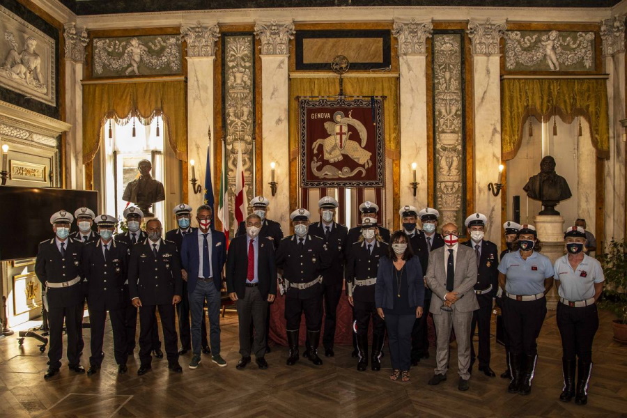 Marco Bacci e Gianluca Giurato, rispettivamente sindaco e comandante della Polizia locale, insieme al presidente del Consiglio del Comune di Genova e all'assessore regionale alla sicurezza hanno consegnato il riconoscimento a una rappresentanza della Polizia locale della stessa Genova presente insieme ai colleghi di Livorno e di Torino, tra coloro che dalle altre città accorsero dopo il crollo, per aiutare a gestire l'emergenza nell'agosto 2018.