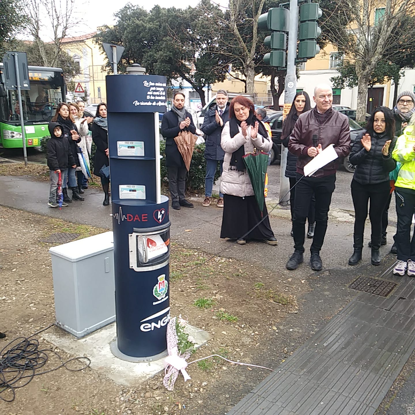 All'evento presenti presenti il sindaco Luca Salvetti, i familiari di Alessia Angulo, rappresentanti delle sette scuole di danza che hanno contribuito all'acquisto del DAE, il Servizio di emergenza del 118, il Settore Impianti Tecnologici del Comune di Livorno e la mandataria Engie Servizi Spa dell'RTI della Concessionaria del Servizio di Pubblica Illuminazione e Smartcity.