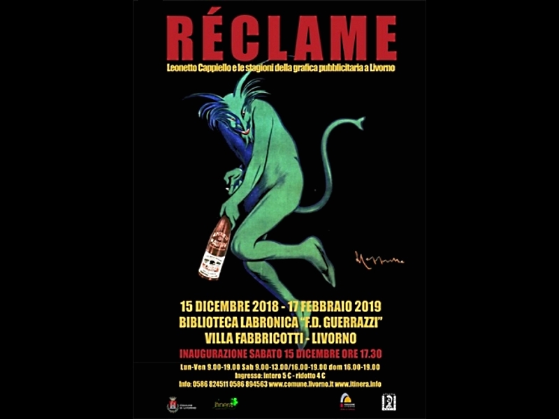 Livorno 6 dicembre 2018 - Si intitola “Rèclame. Leonetto Cappiello e le stagioni della grafica pubblicitaria a Livorno” la mostra che aprirà i battenti il 15 dicembre (inaugurazione ore 17.30) presso la Biblioteca Labronica F.D.Guerrazzi di Villa Fabbricotti (viale della Libertà,30) dove rimarrà fino al 17 febbraio.