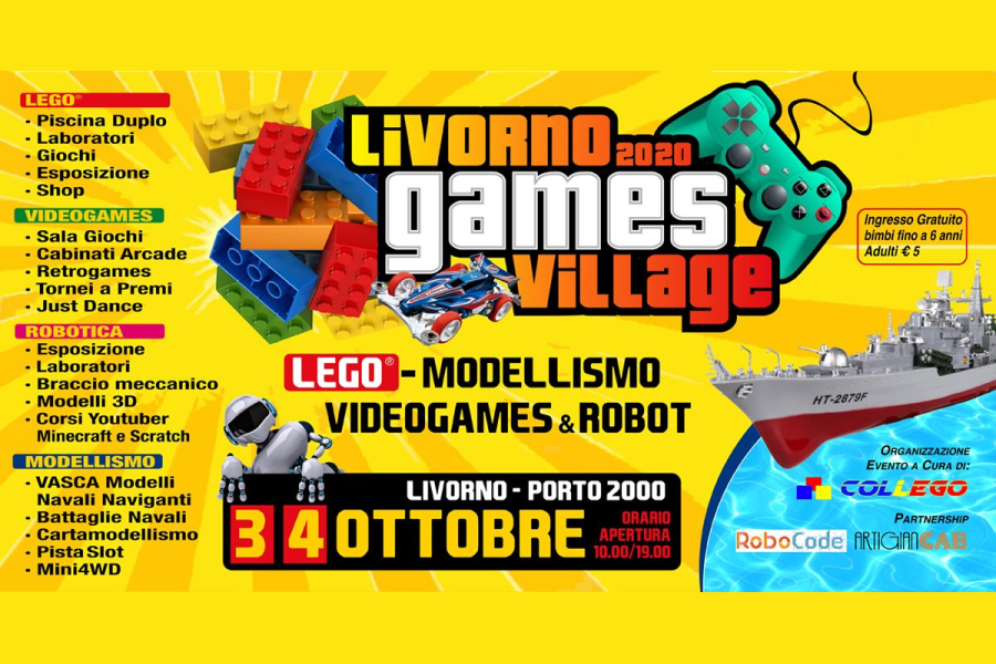 Con questo intento nasce il “Livorno Games Village” organizzato da Collego con Partnership Robocode, ArtigianCab e NonsoloComics: una manifestazione ludica e didattica con scopo culturale e altamente innovativo dedicata alle famiglie ma con attività per bambini, ragazzi e adulti.