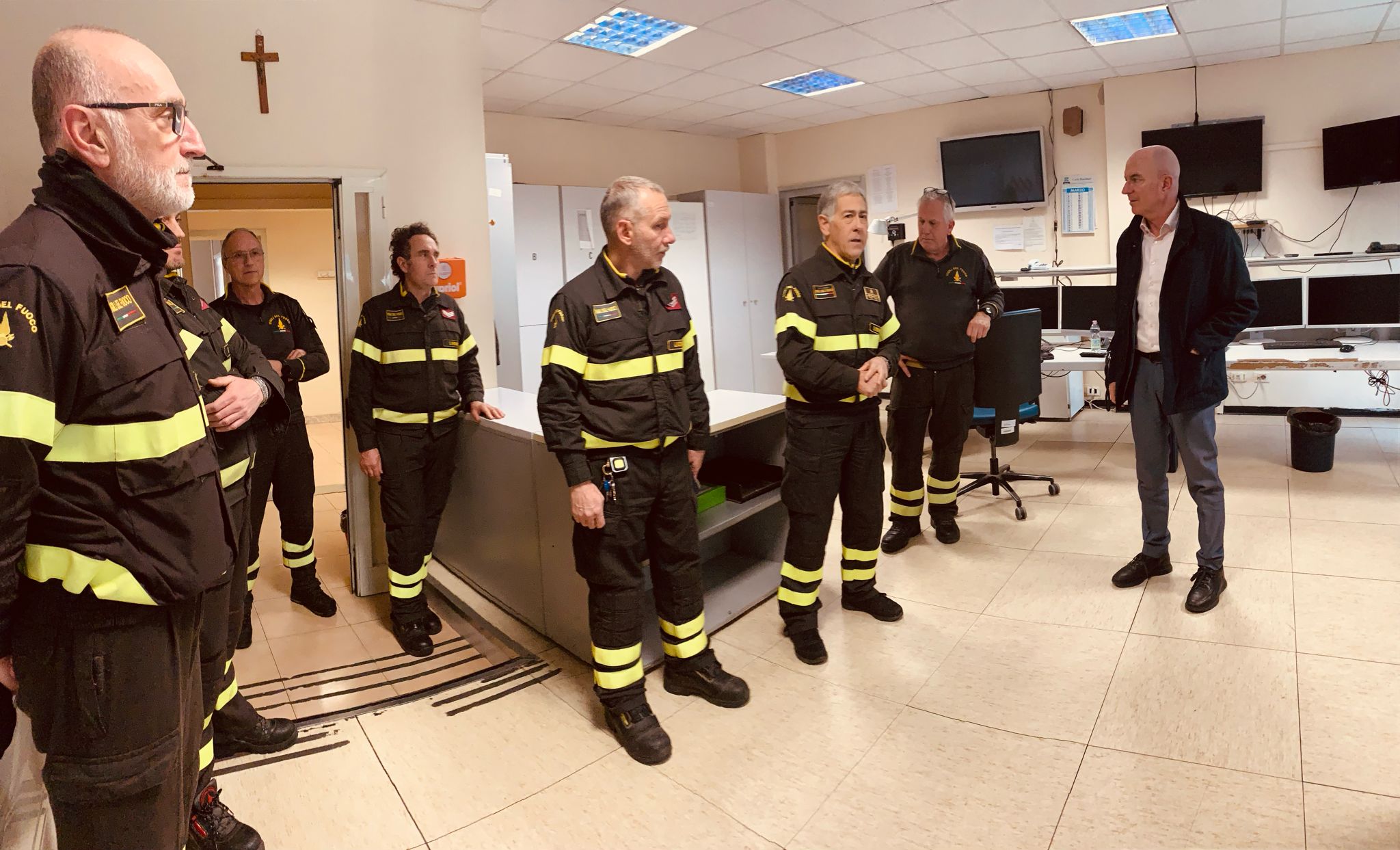 Livorno, 6 marzo 2024 -Il sindaco Luca Salvetti ha incontrato nella Centrale Operativa dei Vigili del Fuoco di Livorno il Comandante Ugo d'Anna e i rappresentanti sindacali, ascoltando le problematiche del Corpo e mettendosi a disposizione per perorare la loro causa.