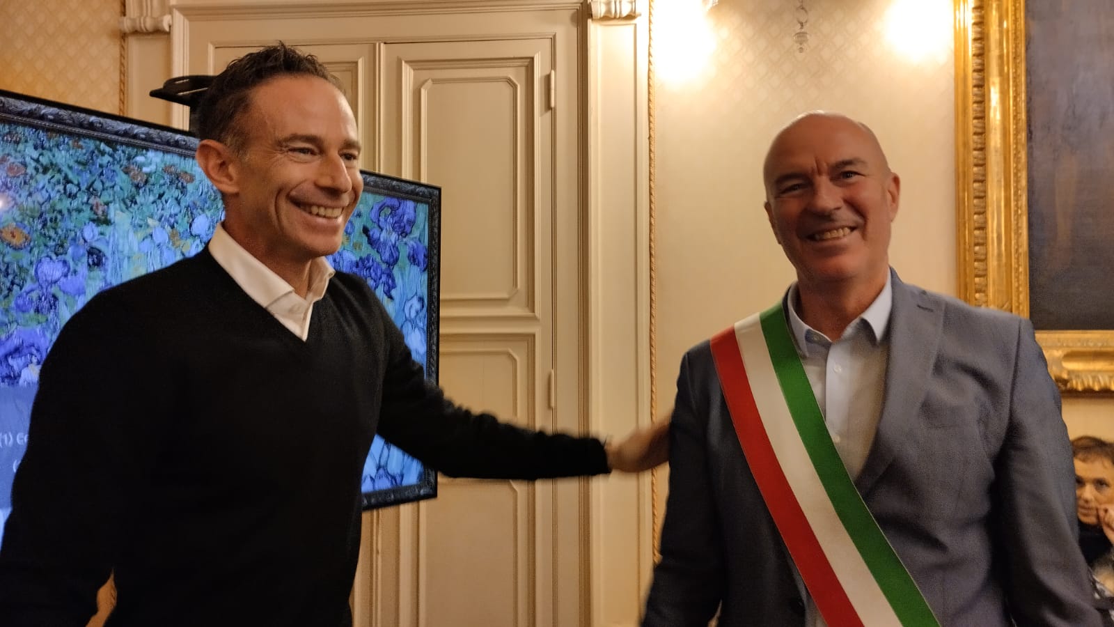 Il sindaco ha omaggiato Filippo Volandri, visibilmente soddisfatto per l'accoglienza ricevuta, con una pergamena, una copia delle Leggi Livornine e con il gagliardetto della città di Livorno.