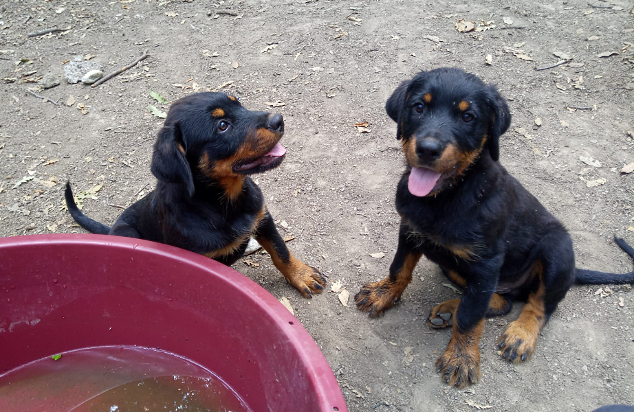 Si tratta di un maschio e una femmina di circa 3 mesi, colore nero e marrone scuro (tipo rotweiler), e non sono dotati di microchip.
