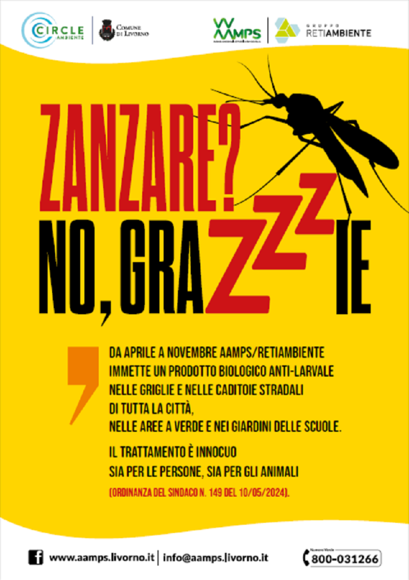 Per informazioni, segnalazioni o richieste di intervento: 800-031.266, ddd@aamps.livorno.it, rifiuti.igiene.comune.livorno.it.