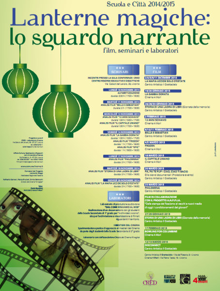 Il progetto “Lo sguardo Narrante” sostenuto dal CRED - Comune di Livorno viene integrato con il progetto Lanterne Magiche sostenuto dalla Regione Toscana e Ufficio Cultura - del Comune di Livorno proponendo qui un’offerta unitaria dando vita, come già accaduto negli anni scolastici passati, al più articolato “Lanterne Magiche Livorno - Lo Sguardo Narrante”.
