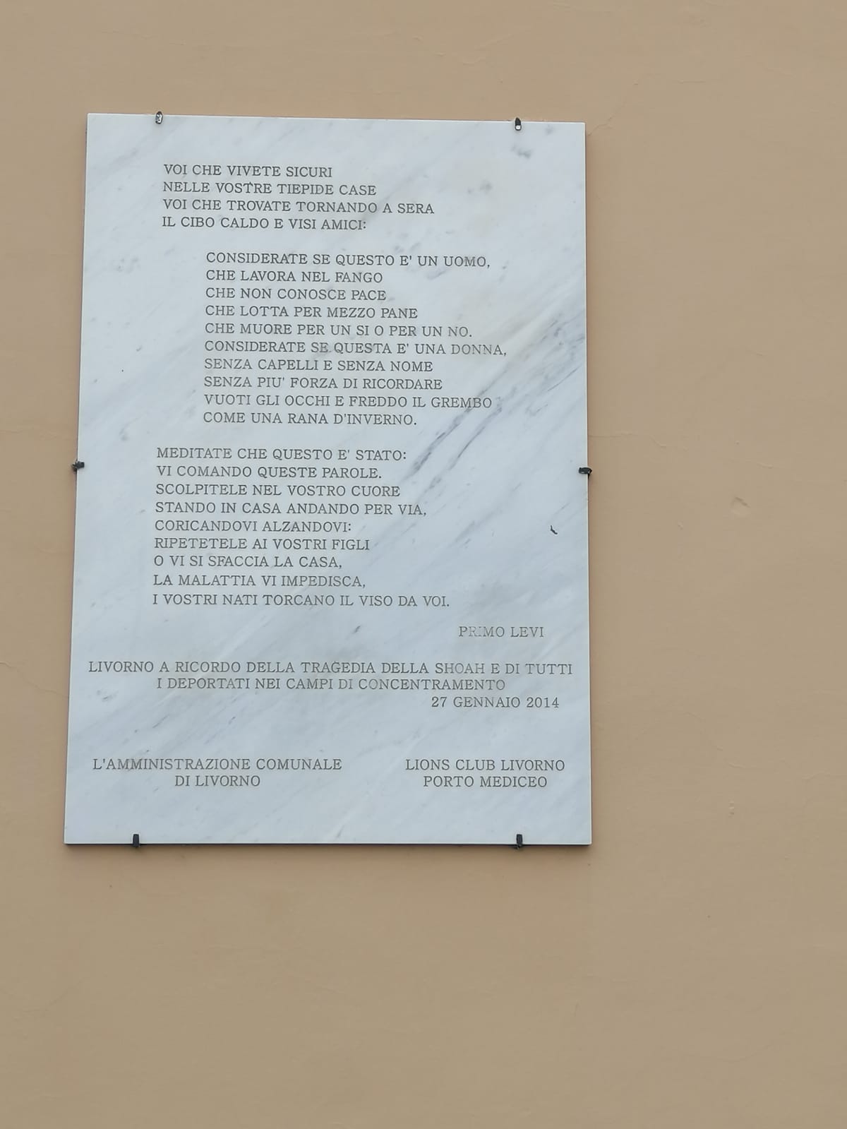 Domenica 2 febbraio alle ore 13 in piazza del Municipio Commemorazione delle Vittime della Shoah davanti alla lapide dedicata a Primo Levi apposta al Palazzo Comunale. A cura di Lions Club Porto Mediceo e Comunità Ebraica di Livorno.