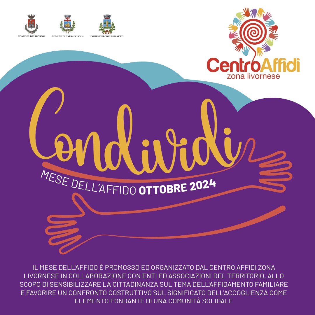 Il Centro Affidi del Comune di Livorno/zona livornese ha organizzato per questo autunno un calendario fitto di appuntamenti per promuovere l’importante opportunità dell’affido familiare, che consiste nell’accoglienza temporanea di un minore presso una famiglia diversa dalla propria, nel caso in cui questa non sia in grado di prendersi cura di lui in modo adeguato e di rispondere i suoi bisogni di crescita.