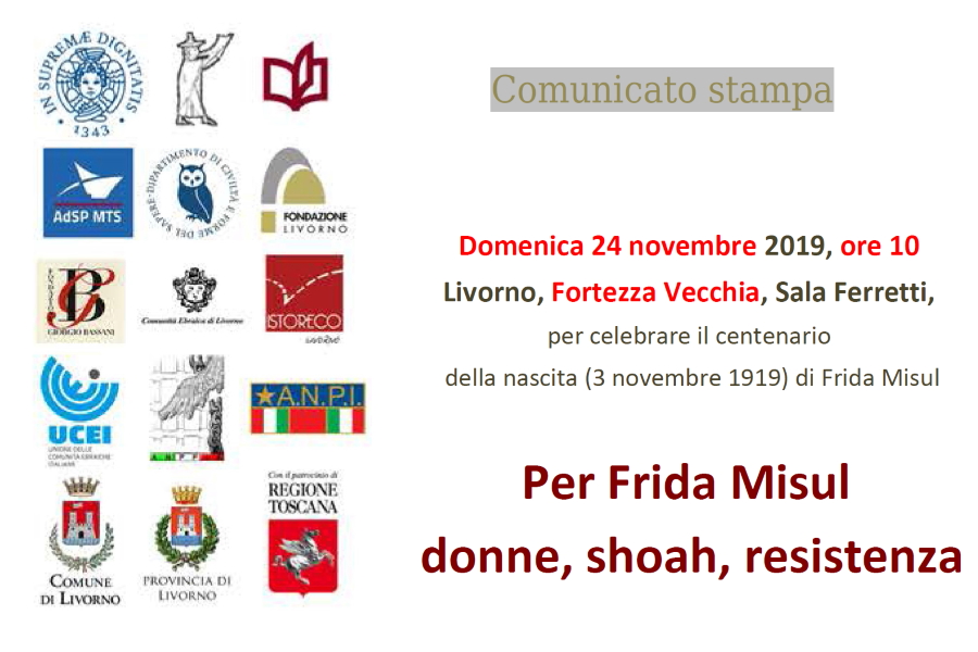 Domenica 24 novembre 2019, ore 10 nella Sala Ferretti della Fortezza Vecchia, per celebrare il centenario della nascita (3 novembre 1919) di Frida Misul, si svolgerà l'incontro dal titolo "Per Frida Misul. Donne, shoah, resistenza".