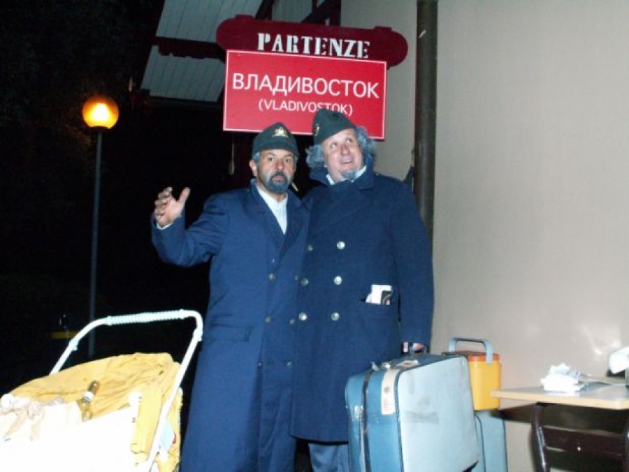 Il pubblico viene accolto da Slava e Cola, due compagni ferrovieri dell’unione sovietica all’ultimo viaggio prima della pensione; i due, inizialmente, preparano i viaggiatori dando informazioni utili e storiche per affrontare l’eroico viaggio e, dopo l’imbarco sulle carrozze della funicolare, trasformata nel secolare treno, inizia lo spumeggiante e strampalato viaggio verso la “fine del mondo”. I due Vagoni Vaganti su e giù per la funicolare di Montenero si ritroveranno infine a Vladivostok per brindare insieme. Affrettatevi che il viaggio è lungo e i treni sono già pronti!