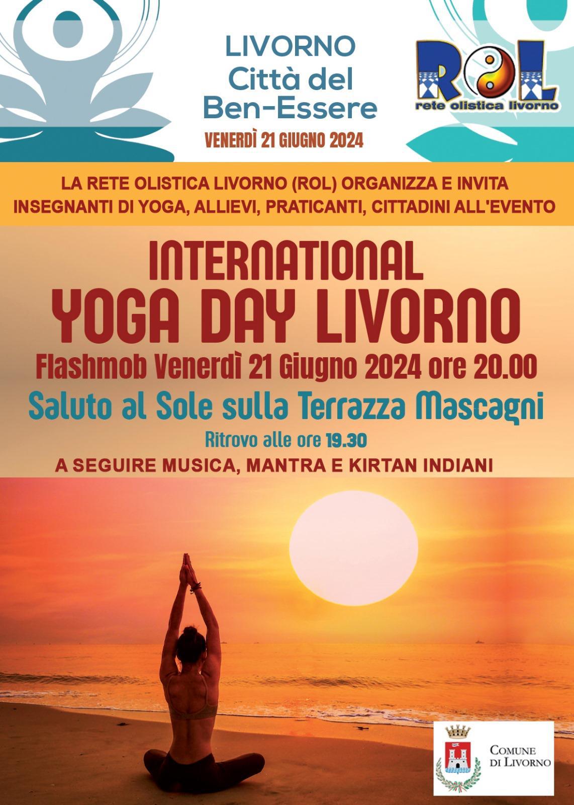 Venerdì 21 giugno in occasione della Giornata Internazionale dello Yoga, che si celebra in tutto il mondo nel giorno del solstizio d’estate, la Terrazza Mascagni, ancora una volta, è stata scelta dai centri e dalle scuole di yoga di Livorno quale suggestiva cornice per l’esecuzione della pratica del Saluto al Sole.