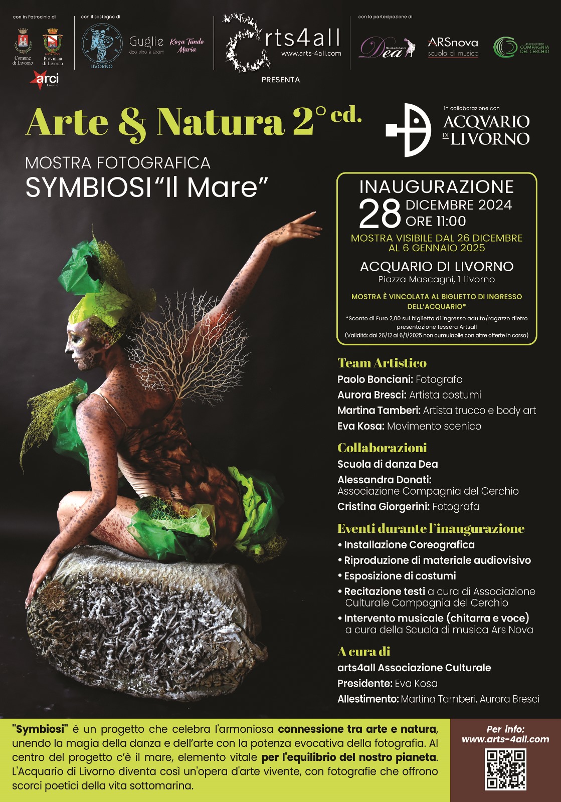Sarà inaugurata sabato 28 dicembre alle ore 11 la mostra fotografica SYMBIOSI “Il Mare” - del progetto “Arte & Natura 2° edizione, a cura di arts4all Associazione Culturale, in collaborazione con l’Acquario di Livorno - che la ospiterà da 26 dicembre fino al 6 gennaio 2025.