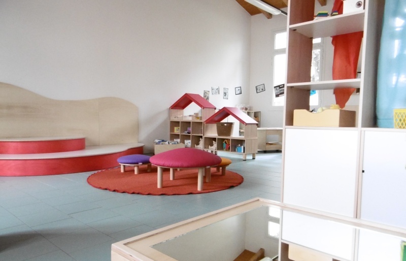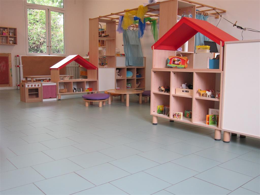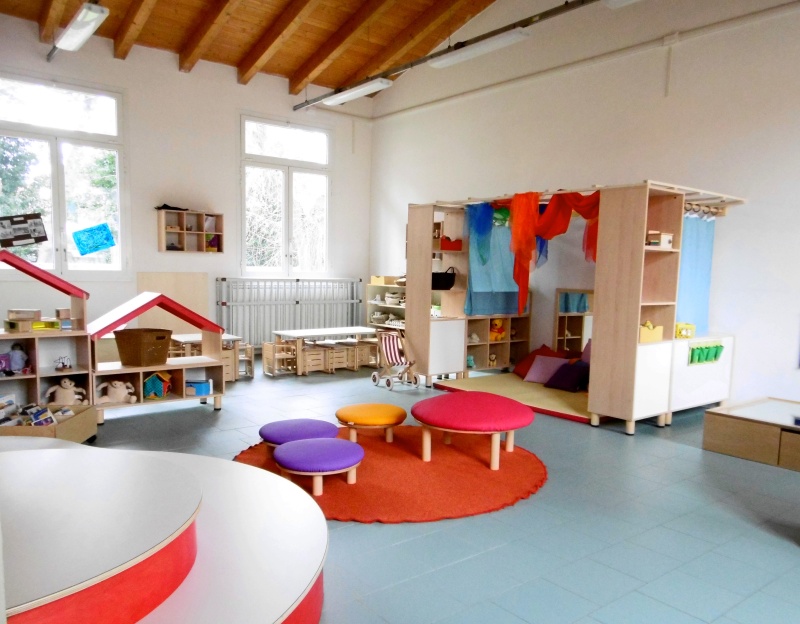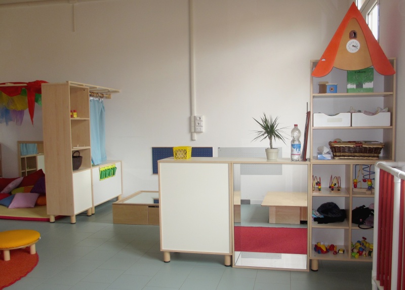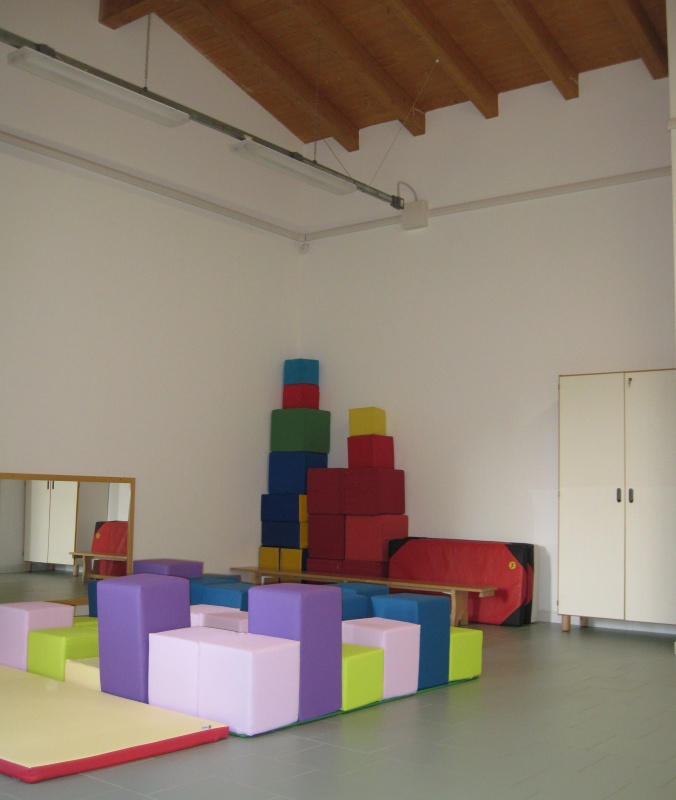 Un altro spazio importante è il salone del motorio, dove i bambini e le bambine possono vivere esperienze attraverso il corpo, esperienze che vengono sostenute, guidate e ri-significate dall'insegnante.