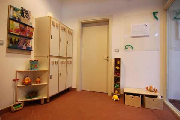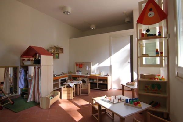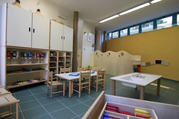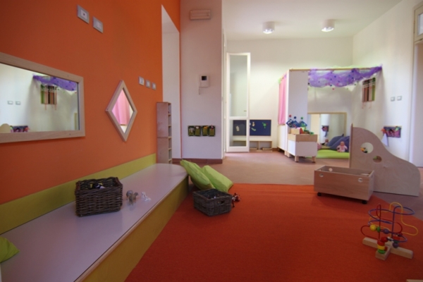 Il primo ambiente è organizzato per il gioco affettivo e di socializzazione (con un angolo-tana, un angolo incontro, un angolo lettura) ; il secondo ambiente è invece finalizzato al gioco simbolico (con l'atelier della casa) ed al suo interno è stata ricavata, divisa dagli spazi-gioco, una piccola cucina per la produzione di colazione ed il porzionamento dei pasti .