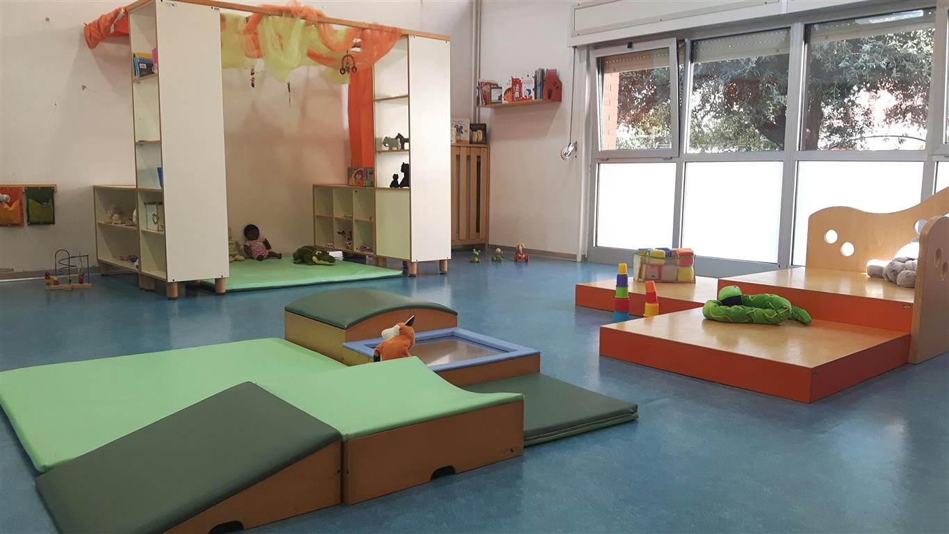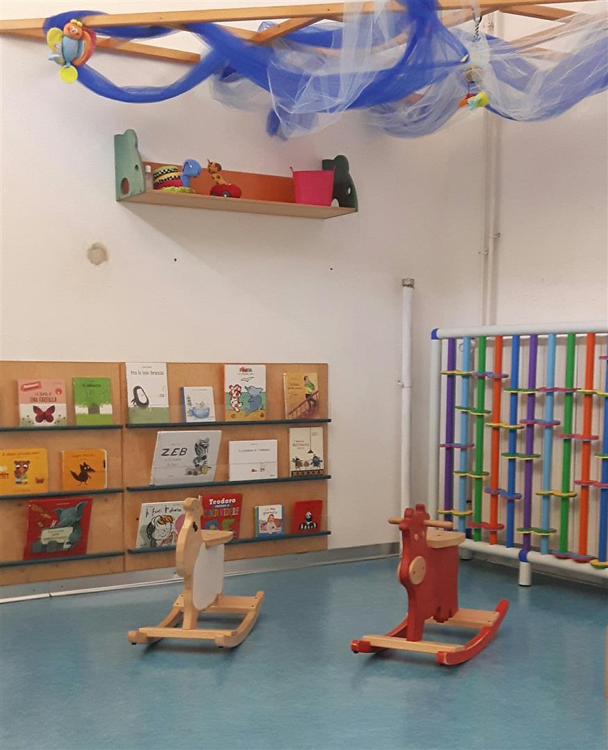 Con la ristrutturazione sono stati ricavati, oltre i servizi per bambini ed adulti ed uno spazio per l'accoglienza, quattro ampi spazi polifunzionali differenziati che possono, a rotazione, esser utilizzati da tutti i bambini : un primo spazio è più pensato per i bambini più piccoli (12-18 mesi) attrezzato con strutture componibili rivestite di materiale antiurto (per il gioco di movimento e per il gioco a terra con costruzioni, incastri, etc. di grandi e medie dimensioni) e con una "tana" (un angolo coperto, un po’ nascosto, che accoglie anche l'angolo per la lettura ed il racconto); un secondo è pensato per i più grandicelli (18-36 mesi) orientato al gioco simbolico e di drammatizzazione (con angoli "della cucina, della casa, delle bambole e con un piccolo teatro) ; un terzo è strutturato con pedane (che contengono anche i materassini per il riposo) ed una parete attrezzata per i giochi sensoriali, percettivi, di costruzione, di incastro, etc; un quarto, da utilizzare anche per la colazione ed il pranzo è strutturato per i giochi a tavolino.