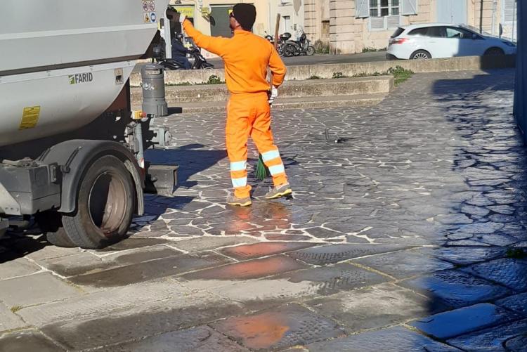 18 Aprile 2023 Operazione di pulizia e decoro in piazza San Marco, coordinata da Segnala-Li con Polizia Municipale, Aamps e Settore Sociale del Comune
